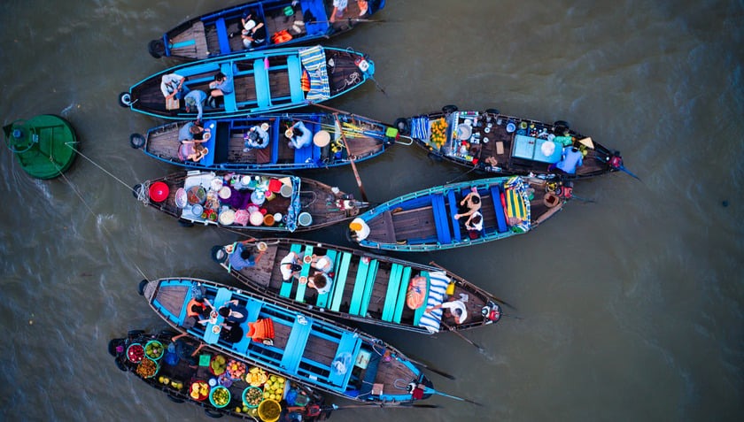 Sáng sớm mùng Một, chợ nổi Cái Răng trở thành điểm nhấn đặc biệt. Những ghe thuyền chở đầy hoa mai, hoa cúc, dưa hấu đỏ rực biến cả dòng sông thành một “vườn hoa di động”. Các tour chợ nổi đầu năm thường đưa du khách ghé thăm nhà dân, thưởng thức bữa cơm rước ông bà và lắng nghe câu chuyện Tết miền Tây mộc mạc, chân tình.