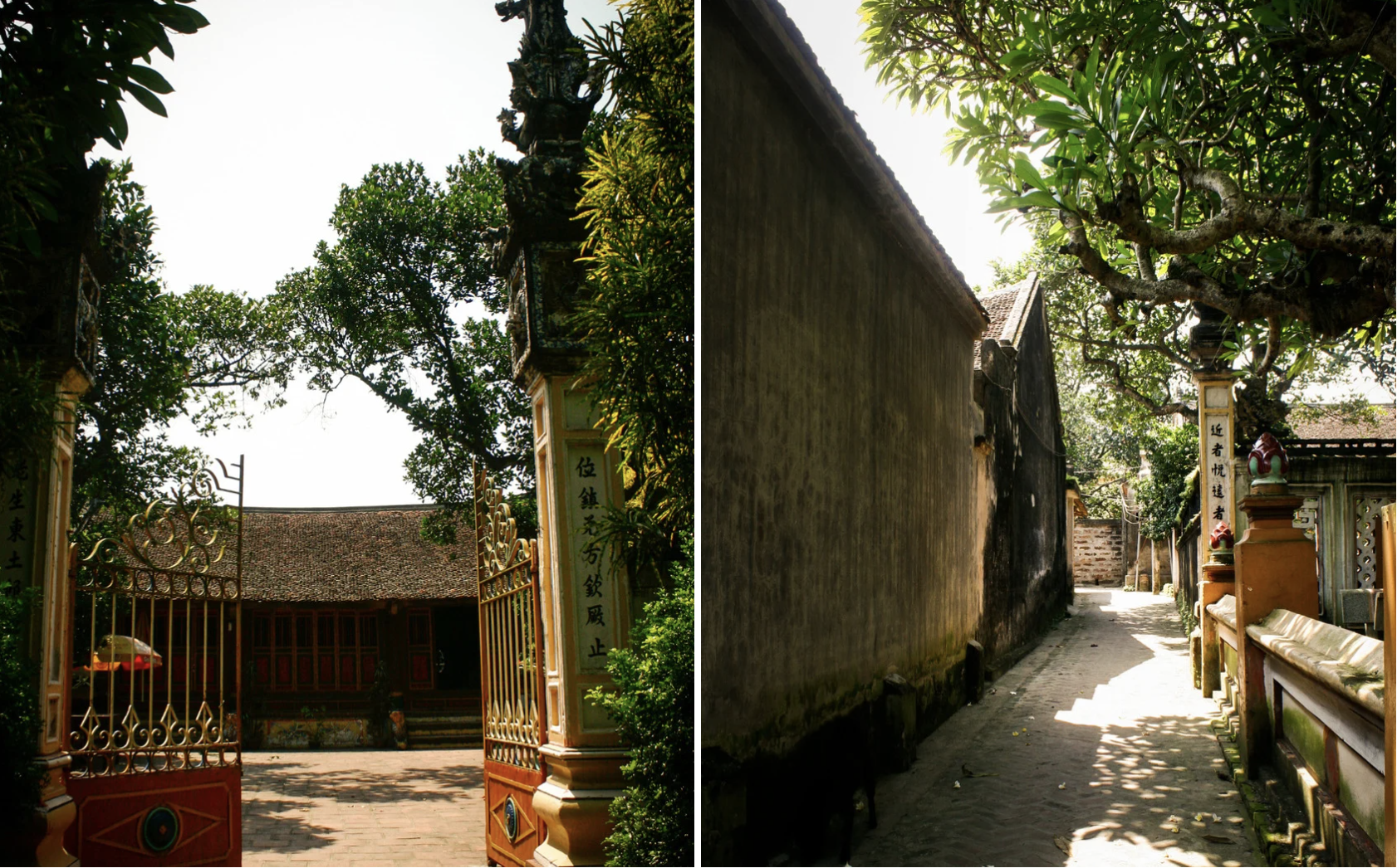 Cách Hà Nội khoảng 50km, làng cổ Đường Lâm vẫn giữ được không khí Tết của vùng quê Bắc Bộ xưa. Những ngôi nhà đá ong, cổng làng rêu phong, câu đối đỏ viết mực tàu gợi cảm giác như bước vào một miền ký ức.