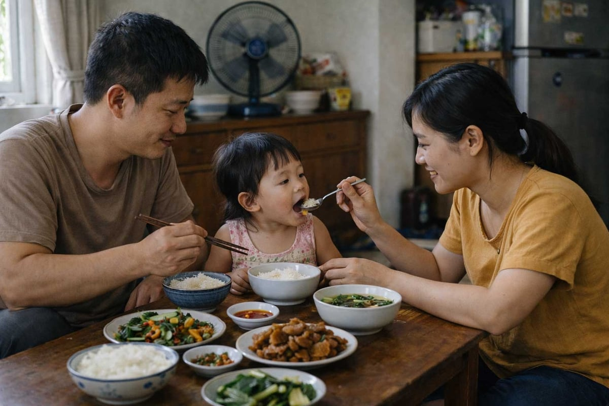 Thói quen ăn uống của các bạn nhỏ chịu ảnh hưởng rất lớn từ gia đình. Khi bố mẹ ăn uống lành mạnh, các bạn cũng sẽ học theo. Vì vậy, phụ huynh hãy cố gắng ăn cùng gia đình khi có thể, tạo không khí vui vẻ trong mỗi bữa ăn.