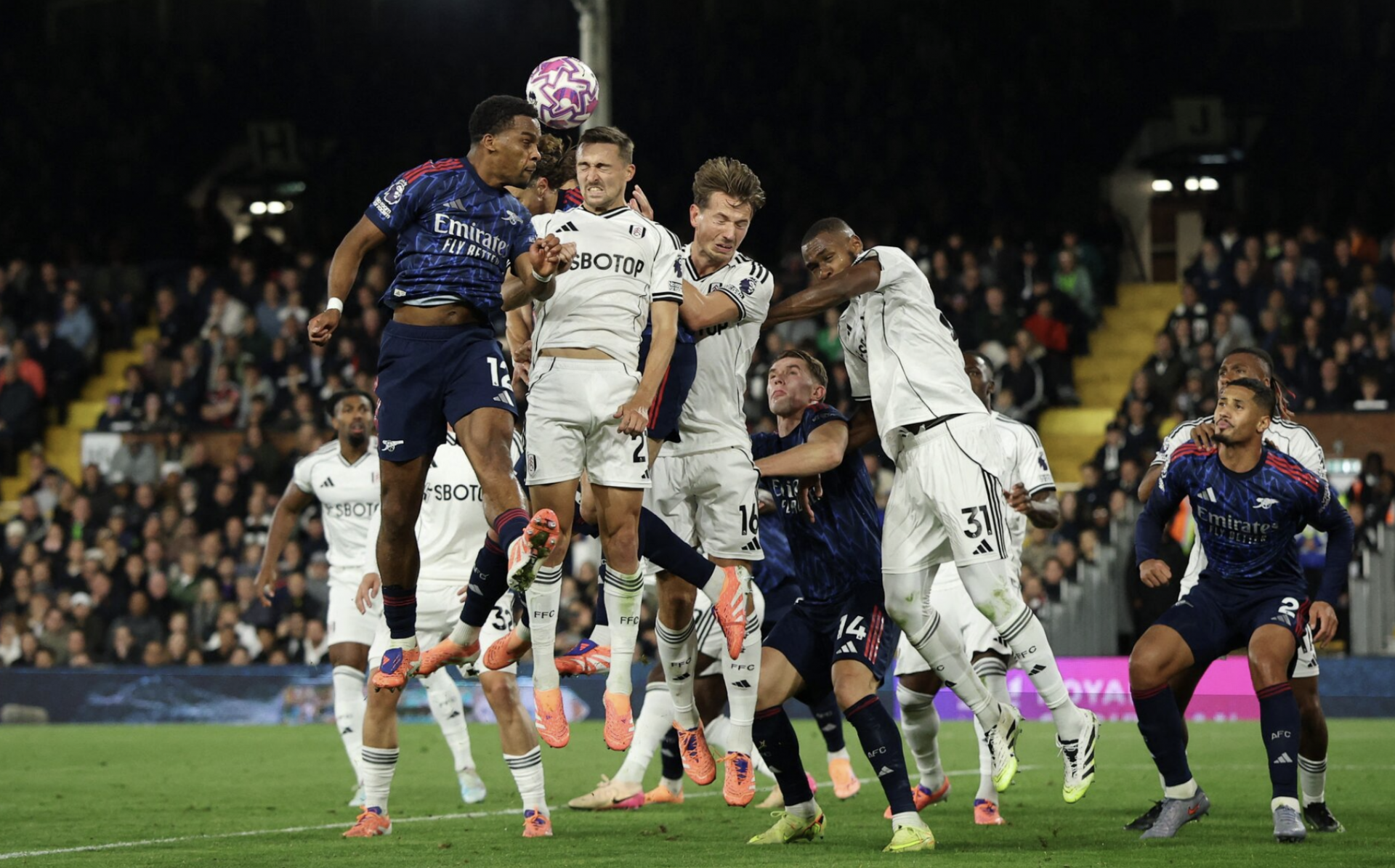 Cùng thời điểm, Arsenal làm khách trên sân Fulham nơi họ từng mất điểm hai mùa liên tiếp. Nhưng lần này, “Pháo thủ” đã thể hiện bản lĩnh ứng viên vô địch khi giành chiến thắng tối thiểu 1-0 nhờ pha lập công của Leandro Trossard ở phút 58. Bàn thắng đến từ bài đánh biên quen thuộc: Saka đá phạt góc bên phải, Gabriel đánh đầu cột gần tạo cơ hội để Trossard đệm bóng cận thành.