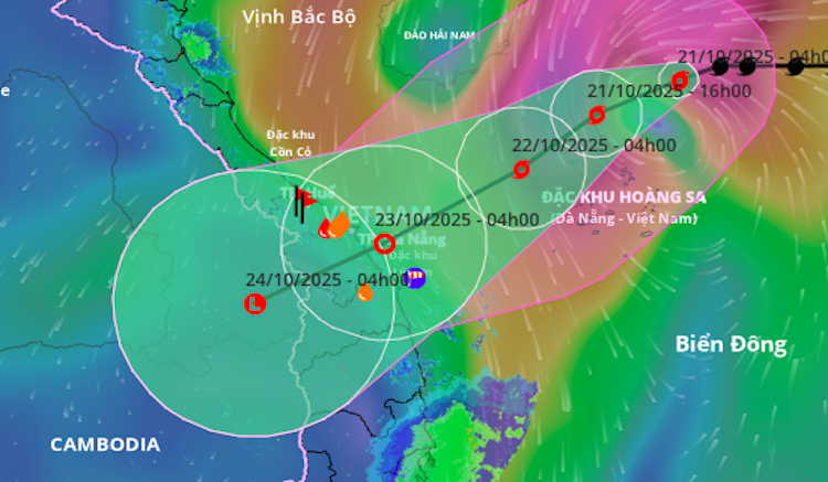 Dự báo trong 24 giờ tới, bão di chuyển theo hướng tây tây nam với tốc độ 10–15 km/giờ. Đến 4 giờ ngày 22/10, tâm bão ở khoảng 17,0 độ vĩ bắc - 110,7 độ kinh đông, trên vùng biển phía tây bắc đặc khu Hoàng Sa. Sức gió mạnh cấp 9–10, giật cấp 12. Vùng nguy hiểm trên Biển Đông từ 15,5–20 độ vĩ bắc, 109,0–115 độ kinh đông. Cấp độ rủi ro thiên tai: cấp 3.