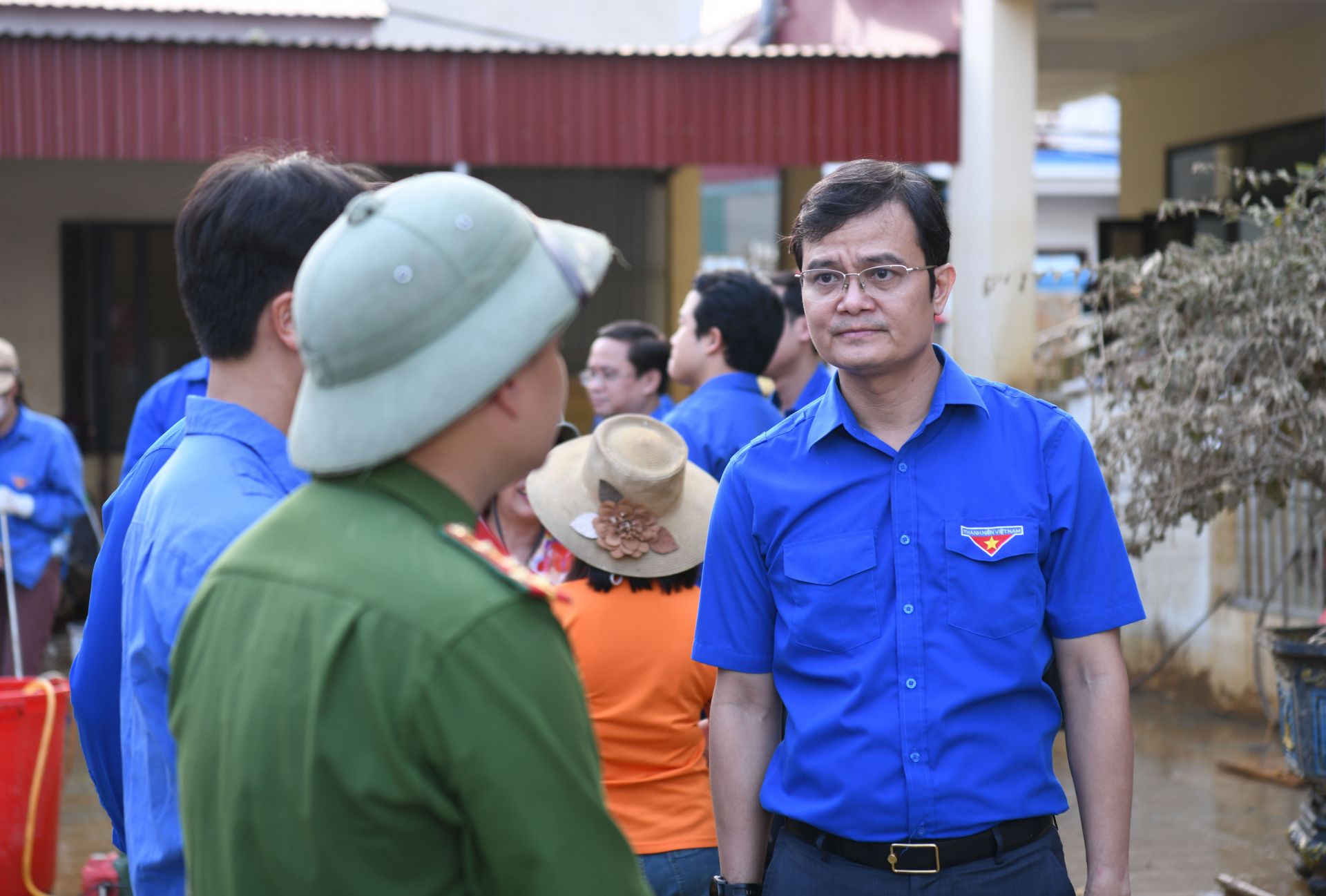 Sau các hoạt động thăm hỏi, Bí thư thứ nhất T.Ư Đoàn cùng đoàn công tác đã đến thăm lực lượng thanh niên tình nguyện đang tham gia khắc phục hậu quả thiên tai tại xã Hợp Thịnh. Tại đây, anh ghi nhận và biểu dương tinh thần xung kích, trách nhiệm và không ngại khó khăn của các đoàn viên, thanh niên tỉnh Bắc Ninh đã chủ động hỗ trợ người dân dọn dẹp, vệ sinh trường lớp, khắc phục hậu quả mưa lũ để sớm ổn định việc dạy và học.