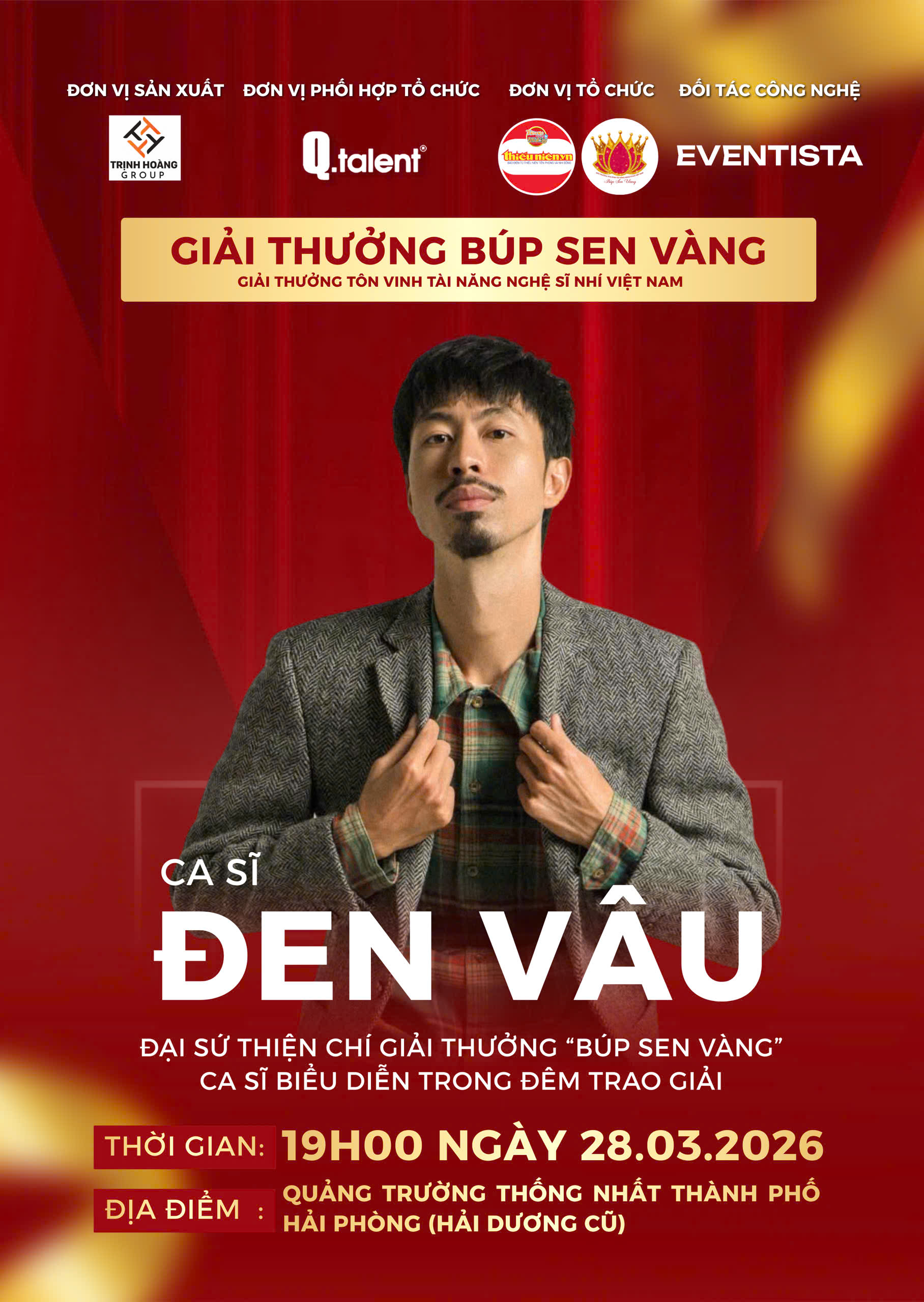 Tại Giải thưởng Búp Sen Vàng 2025 — sân chơi tôn vinh tài năng nghệ thuật thiếu nhi Việt Nam, rapper Đen Vâu đóng vai trò Đại sứ thiện chí đã mang ý nghĩa đặc biệt. Anh không chỉ là gương mặt đại diện lan tỏa thông điệp nhân văn của chương trình, mà còn là người truyền cảm hứng cho thế hệ trẻ về lối sống tử tế, biết yêu thương và sẻ chia.