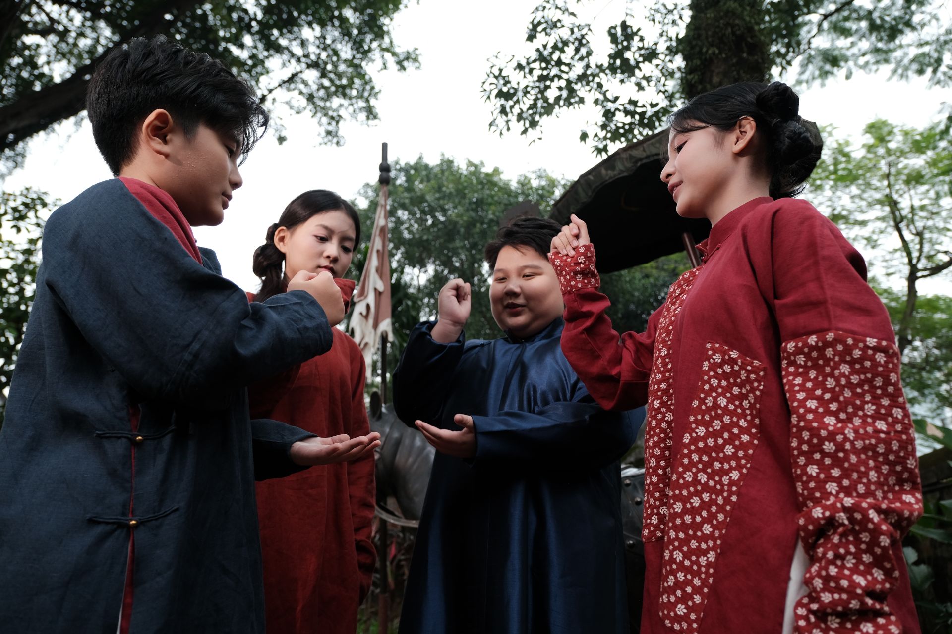Trong không khí rộn ràng của ngày Tết, bốn bạn nhỏ “làng Mây” sánh bước bên nhau trong những bộ áo dài rực rỡ, vừa đi vừa trò chuyện rôm rả về bao câu chuyện mới và cũ. Nụ cười của các bạn hòa vào sắc xuân đang tràn ngập khắp nơi, khiến bức tranh Tết trở nên ấm áp và thật đẹp.