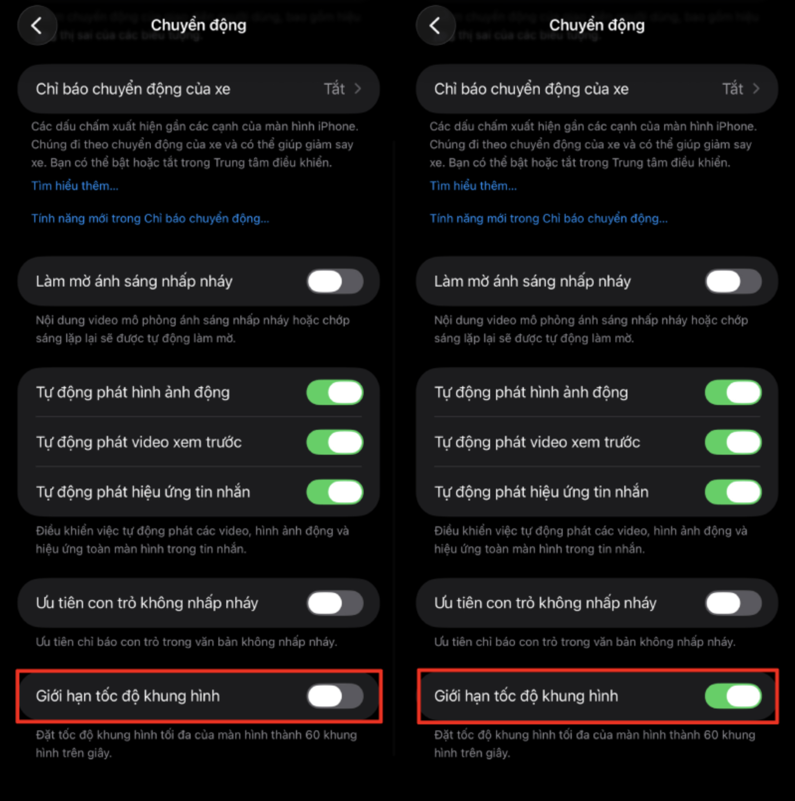 Apple khuyến nghị nên để máy tự động điều chỉnh tần số quét để đạt hiệu quả tối ưu. Tuy nhiên, việc chuyển sang chế độ 60Hz thủ công vẫn hữu ích khi người dùng muốn kéo dài thêm vài giờ sử dụng trong những chuyến đi dài.