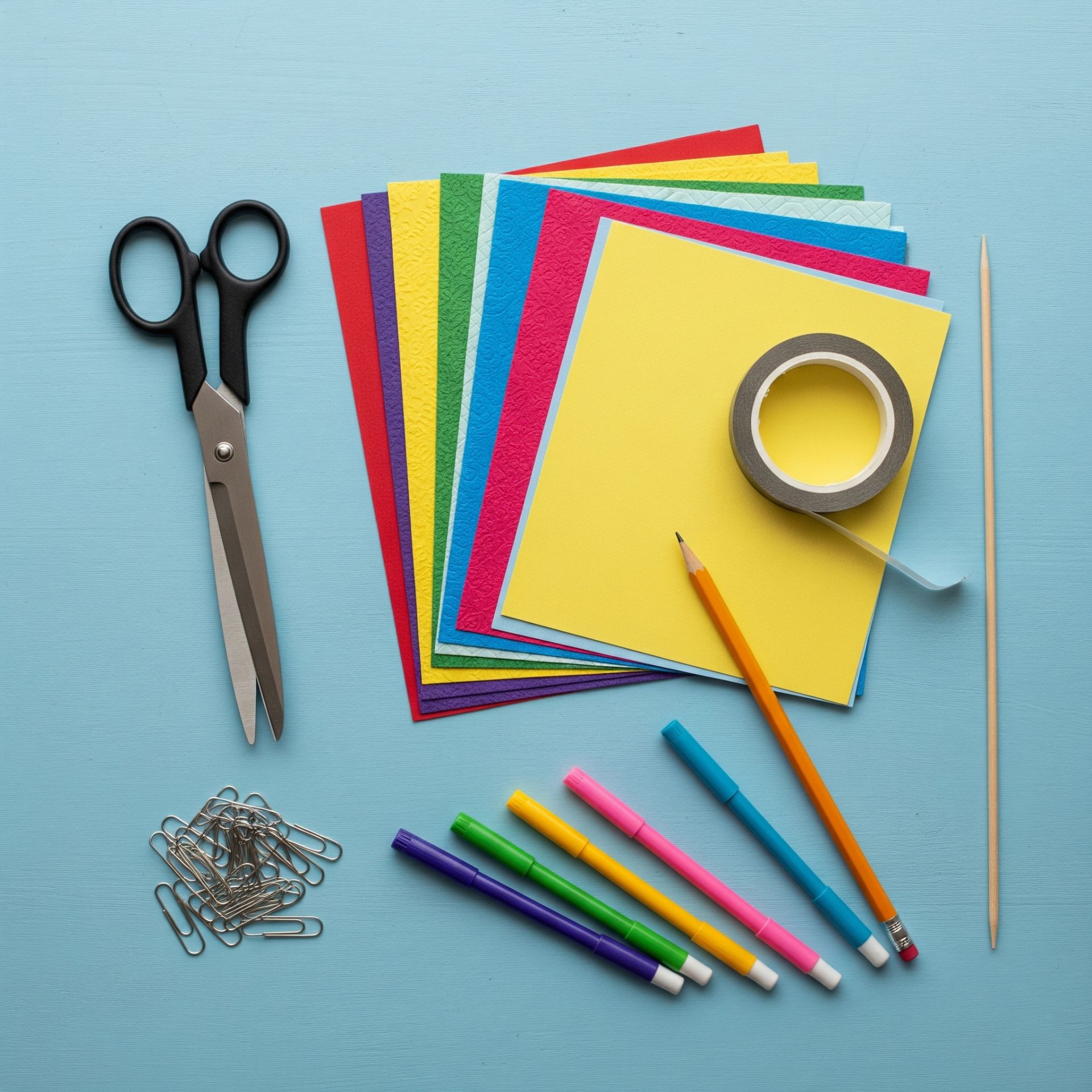 - Vật liệu: giấy màu (nên chọn loại hơi cứng), bút chì, bút màu nếu muốn trang trí thêm