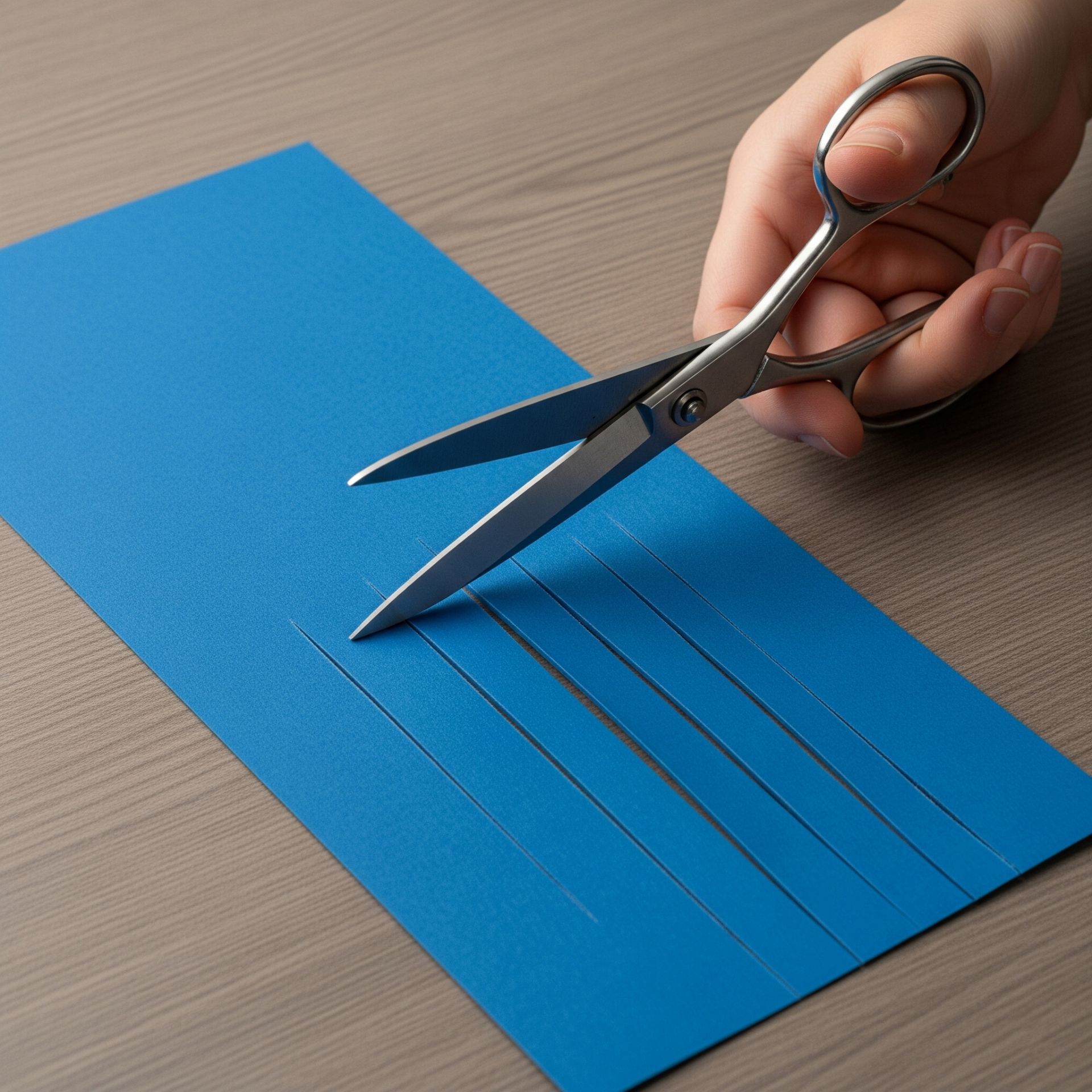 Lấy một mảnh giấy hình chữ nhật có chiều dài gấp ba hoặc bốn lần chiều rộng, dùng bút chì vẽ các đường thẳng song song với cạnh ngắn của giấy. Mỗi đường cần cách đều nhau và cách mép trên dưới khoảng 2cm để giữ cố định.
