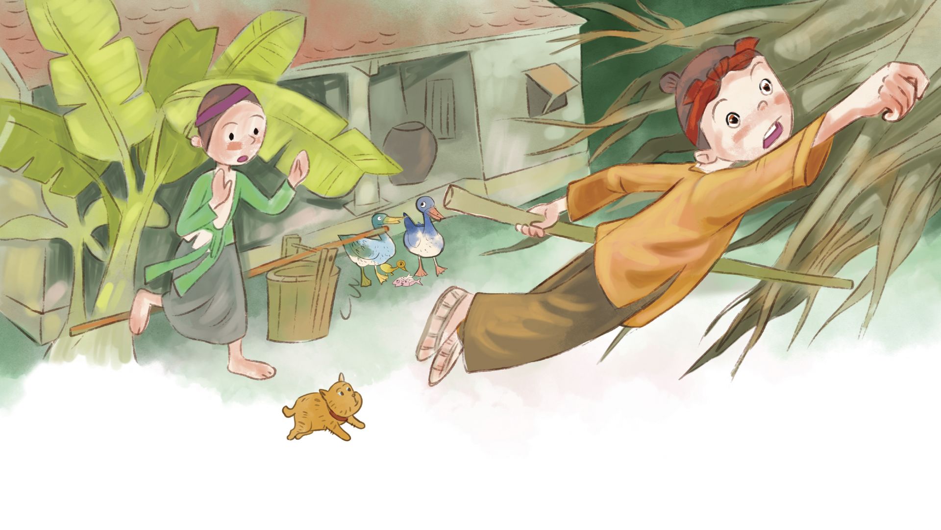 Có lần, Cuội phải đi qua ngày, anh liền dặn vợ ở nhà nhớ tưới nước cho cây thần. Anh còn cẩn thận dặn vợ nhiều lần là phải tưới cây bằng nước giếng trong, chớ tưới nước bẩn kẻo cây bay lên trời.