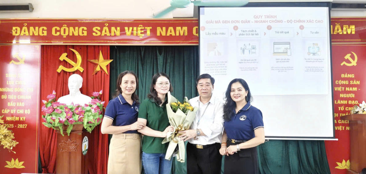 Cũng trong khuôn khổ chương trình, toàn thể cán bộ, giáo viên, nhân viên nhà trường được bác sĩ Nguyễn Đức Hạnh (Trung tâm Giải mã gen Việt Nam) chia sẻ về lợi ích của việc giải mã gen sớm nhằm phát hiện nguy cơ bệnh tật từ giai đoạn đầu, hỗ trợ điều trị hiệu quả, đặc biệt là các bệnh ung thư.