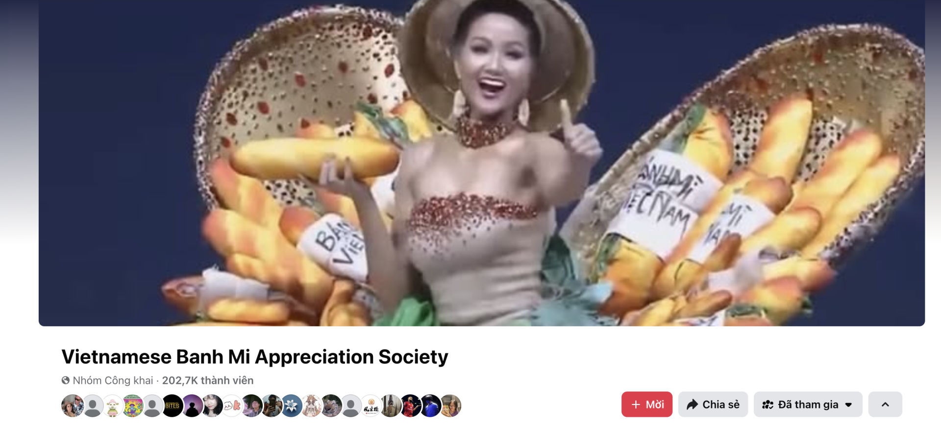 Hình ảnh đại diện của nhóm sử dụng khoảnh khắc H'Hen Niê trình diễn trang phục lấy cảm hứng từ bánh mì tại Miss Universe 2018, như một biểu tượng cho sự vươn ra thế giới của ẩm thực Việt.