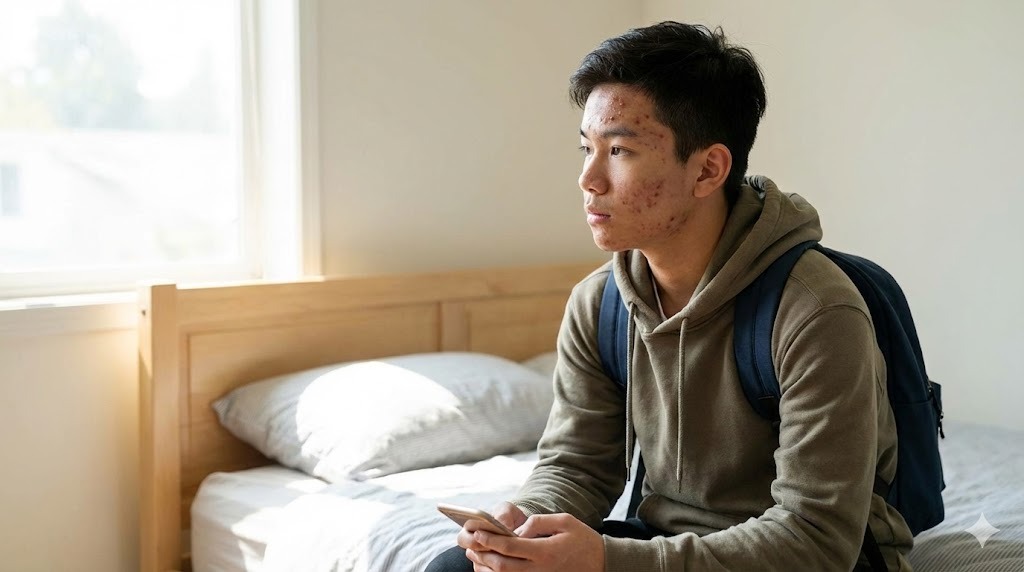 Ở tuổi này, nội tiết tố trong cơ thể hoạt động mạnh hơn. Với cả nam và nữ, mụn trứng cá là “vị khách không mời” xuất hiện khá phổ biến. Mụn hình thành do tuyến dầu dưới da hoạt động nhiều hơn, khiến lỗ chân lông bị bít lại, tạo điều kiện cho vi khuẩn phát triển. Mụn trứng cá thường xuất hiện nhiều ở mặt, cổ, vai, lưng hoặc ngực.