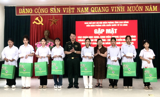 Ngày 4/9, Đồn Biên phòng Cửa khẩu Quốc tế Tà Lùng (tỉnh Cao Bằng) tổ chức buổi gặp mặt, trao học bổng và tặng quà cho 15 học sinh, sinh viên đang được đơn vị nhận hỗ trợ trong khuôn khổ Chương trình “Nâng bước em tới trường – Con nuôi Đồn Biên phòng” trước thềm năm học mới 2025 – 2026.