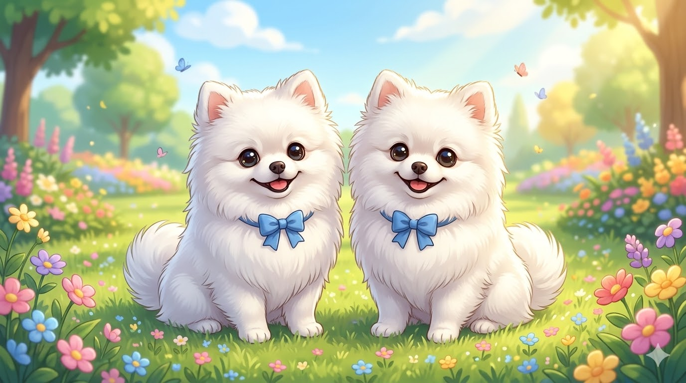 Theo năm tháng tôi lớn dần lên thành một cậu choai bước vào tuổi trưởng thành. Đến một ngày kia, khi vừa chơi đùa ngoài bãi cỏ trồng đầy hoa bồ công anh và hoa cúc ở đằng sau nhà trở về, tôi bỗng sững lại. Trước mắt tôi, ngay trước hiên, cạnh vị chủ là một chú chó y hệt như tôi! Từ bộ lông trắng muốt, cái đuôi nhỏ vẫy vẫy, và đặc biệt là đôi mắt xanh như biết nói, biết cười.