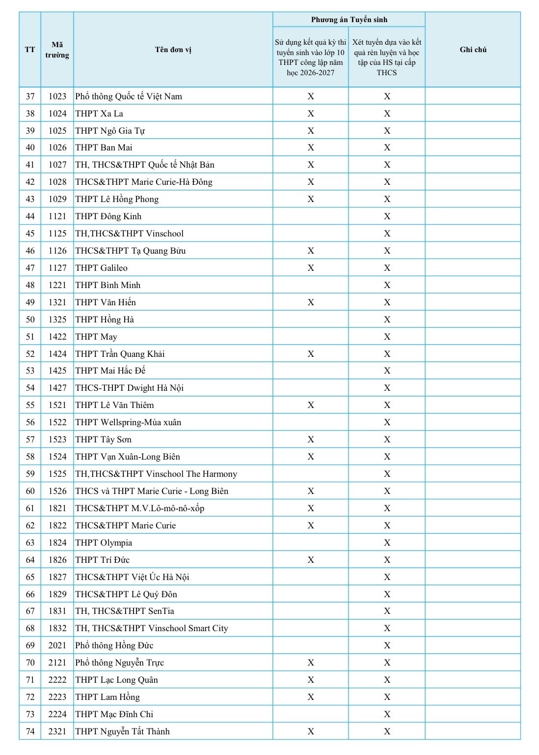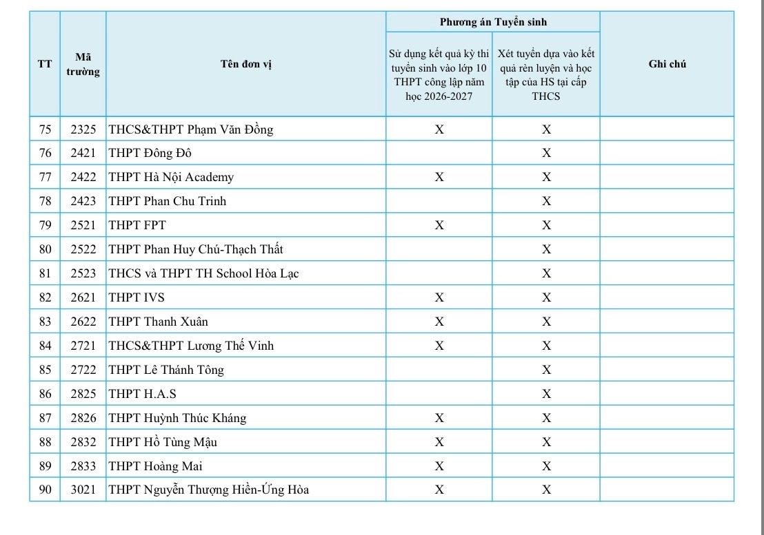 Dưới đây là danh sách phương án tuyển sinh của các trường THPT chất lượng cao và tư thục TP. Hà Nội: