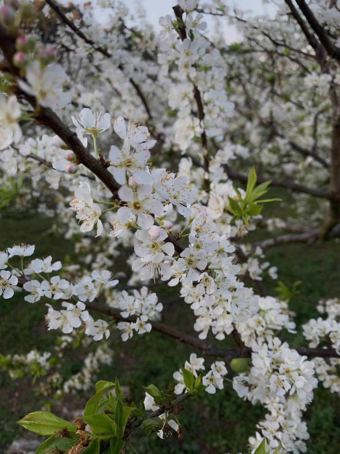 Những bông mận trắng nhỏ li ti bao phủ các triền đồi, thung lũng, tạo cảm giác như sương mỏng giăng khắp núi rừng. Giữa tiết trời se lạnh và bầu không khí trong trẻo của vùng cao, cảnh sắc Mộc Châu trở nên thơ mộng và yên bình hơn bao giờ hết.