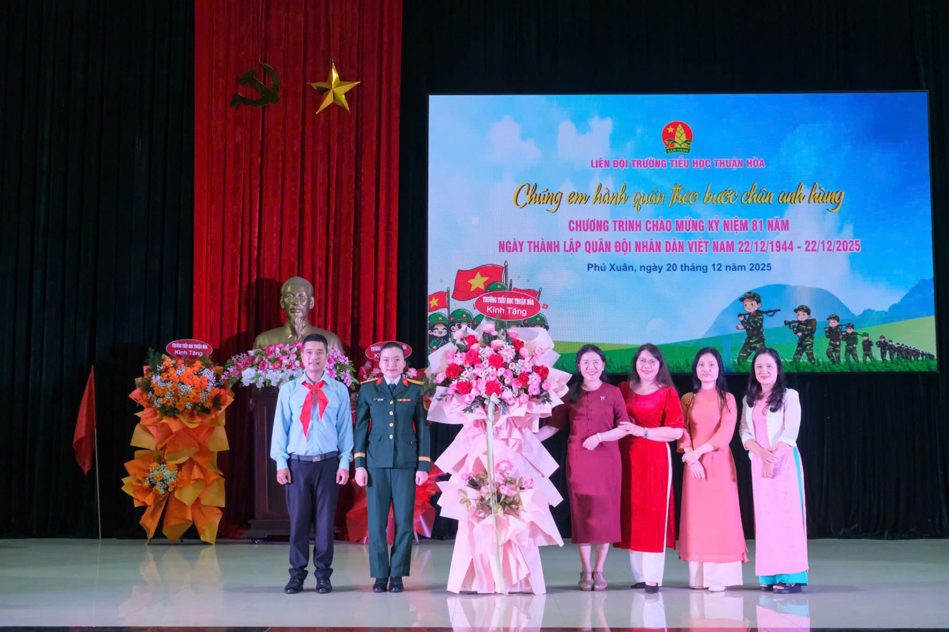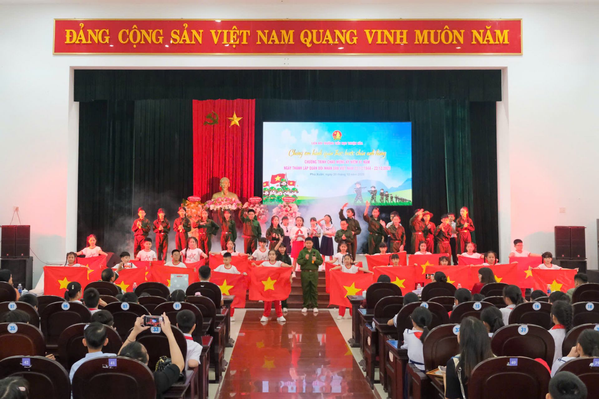 Phát biểu chúc mừng, nhà giáo Nguyễn Khoa Hảo Thư, Hiệu trưởng nhà trường đã gửi lời chúc mừng tốt đẹp đến các đơn vị bộ đội trên địa bàn, đồng thời khẳng định vai trò to lớn của Quân đội Nhân dân Việt Nam trong sự nghiệp bảo vệ và xây dựng Tổ quốc. Cô nhắn nhủ: “Mong các em hãy luôn chăm ngoan, học giỏi để xứng đáng với truyền thống anh hùng của dân tộc chúng ta!”.