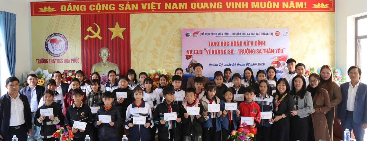 Đồng hành cùng Quỹ học bổng có sự tham gia của các thầy cô lãnh đạo Sở GD&ĐT tỉnh Quảng Trị, Báo Thiếu niên Tiền phong và Nhi đồng. Những ngày cuối năm tất bật nhưng đoàn công tác vẫn dành nhiều ngày vượt bao cung đường đèo dốc xa xôi để đến với các điểm trường miền núi: trường TH&THCS A Ngo và trường TH&THCS A Bung (xã La Lay); trường TH Quảng Tùng, trường THCS Cảnh Dương (xã Hòa Trạch); trường Tiểu học và THCS Hóa Phúc (xã Tân Thành). Tiếp đến, đoàn xuôi về vùng sóng gió Cửa Việt, Cửa Tùng, đảo Cồn Cỏ để kịp thắp lên niềm vui cho các bạn nhỏ khi không khí mùa Xuân đang đến rộn ràng.