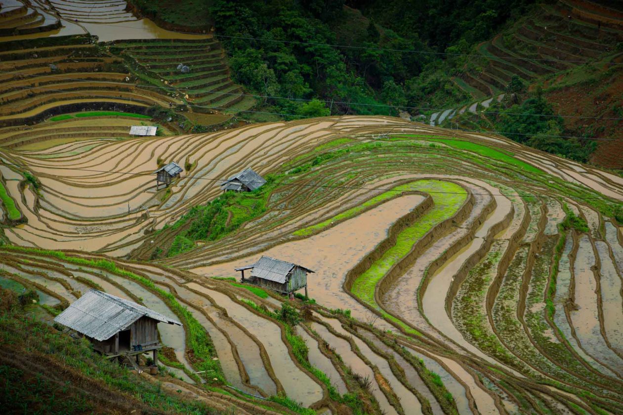 Huyện Mù Cang Chải cách Hà Nội hơn 300km về phía Bắc, là điểm đến nổi tiếng trong mùa nước đổ (tháng 5 - 6) và mùa lúa chín (tháng 9 - 10). (Ảnh: Giàng A Chay)Hình ảnh mùa nước đổ - hay còn gọi là mùa đổ ải, vừa được anh Giàng A Chay, hướng dẫn viên du lịch địa phương, ghi lại ngày 15/5 tại hai xã La Pán Tẩn và Cao Phạ. Từ trên cao nhìn xuống, các thửa ruộng bậc thang hiện lên như những dải lụa uốn lượn, xen kẽ giữa những mảng xanh mướt của mạ non đang chuẩn bị được cấy. (Ảnh: Giàng A Chay)Những thửa ruộng bậc thang nối tiếp nhau từ chân núi đến đỉnh đồi đang được người dân đắp bờ, dẫn nước vào từng ô ruộng để cày ải, làm đất tơi xốp, sẵn sàng gieo cấy lúa vụ mới. (Ảnh: Giàng A Chay)Cảnh sắc ruộng ngập nước, phản chiếu mây trời và núi non tạo nên một bức tranh thiên nhiên sống động, thu hút nhiều du khách và nhiếp ảnh gia tìm đến. (Ảnh: Giàng A Chay)Đối với người dân vùng cao, sản xuất nông nghiệp vẫn phụ thuộc nhiều vào điều kiện tự nhiên. Dù việc khai đất, dẫn nước lên núi rất vất vả, nhưng đổi lại, ngoài những vụ mùa no đủ, họ còn góp phần tạo nên cảnh quan kỳ vĩ, thúc đẩy phát triển du lịch cộng đồng. (Ảnh: Giàng A Chay)Để canh tác lúa trên ruộng bậc thang, người dân phải lựa chọn khu vực sườn đồi hoặc triền núi có độ dốc phù hợp, diện tích đủ rộng và thuận lợi trong việc dẫn nước từ suối, mưa về tưới tiêu cho cây trồng. (Ảnh: Giàng A Chay)Năm 2007, ruộng bậc thang tại ba xã La Pán Tẩn, Dế Xu Phình và Chế Cu Nha được Bộ Văn hóa, Thể thao và Du lịch xếp hạng là Danh thắng quốc gia. Bên cạnh đó, Mù Cang Chải cũng được các tạp chí du lịch quốc tế giới thiệu là một trong những nơi có ruộng bậc thang đẹp nhất thế giới. (Ảnh: Giàng A Chay)Đến Mù Cang Chải vào mùa nước đổ, ngoài chiêm ngưỡng vẻ đẹp ruộng bậc thang, du khách còn có thể khám phá đèo Khau Phạ – một trong "tứ đại đỉnh đèo" của Việt Nam. (Ảnh: Giàng A Chay)Từ đây, có thể phóng tầm mắt bao quát toàn cảnh vùng cao hùng vĩ hoặc tham gia trải nghiệm dù lượn, ngắm nhìn vẻ đẹp thiên nhiên từ độ cao 1.200 m so với mực nước biển.