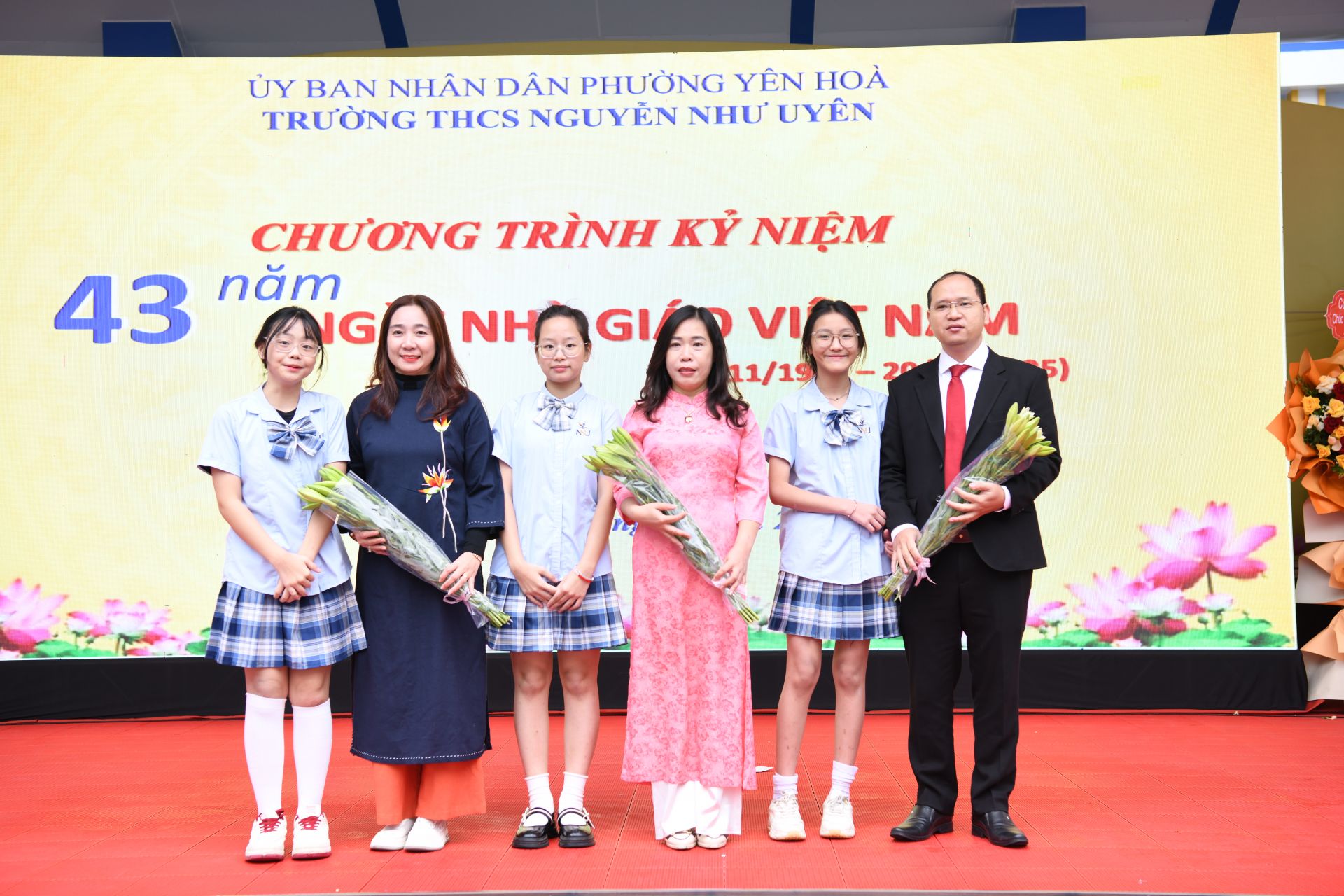 Thay mặt các bạn học sinh trong trường, em Chu Bảo Quyên (học sinh lớp 6A6) nói lời tri ân: "Nếu cha mẹ cho chúng em hình hài, cho chúng em tình yêu đầu tiên của cuộc đời, thì thầy cô là những người cha, người mẹ thứ hai tiếp tục nuôi dưỡng tâm hồn, thắp lên trong chúng em ý chí và ước mơ. Mỗi bài giảng của thầy cô không chỉ có tri thức, mà còn ẩn chứa cả một tấm lòng, sự lo lắng và niềm hi vọng; những bài học sâu sắc theo chúng em suốt cuộc đời. Thầy cô đã kiên nhẫn dìu dắt chúng em, ngay cả khi chúng em còn vô tư, vụng dại hay đôi lúc chưa thể hiểu hết tấm lòng của người đứng trên bục giảng".