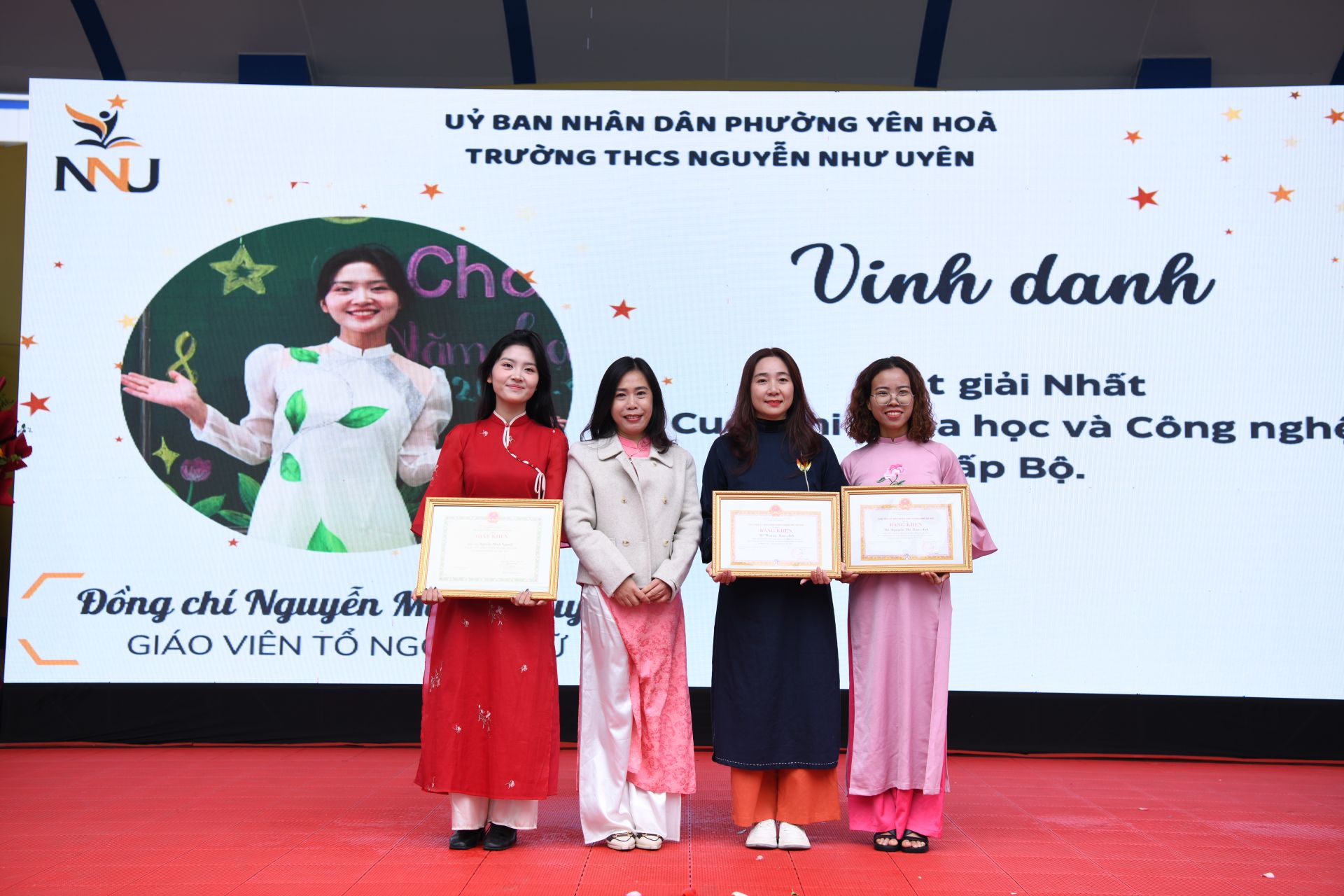 Cũng tại buổi lễ, các thầy cô có nhiều đóng góp cho sự nghiệp giáo dục đã vinh dự nhận Bằng khen của Bộ Giáo dục và Đào tạo, Chủ tịch UBND TP. Hà Nội. Ngoài ra, Ban Giám hiệu nhà trường đã trao danh hiệu "Chiến sĩ thi đua cấp cơ sở", Giấy khen cho các thầy cô giáo xuất sắc.
