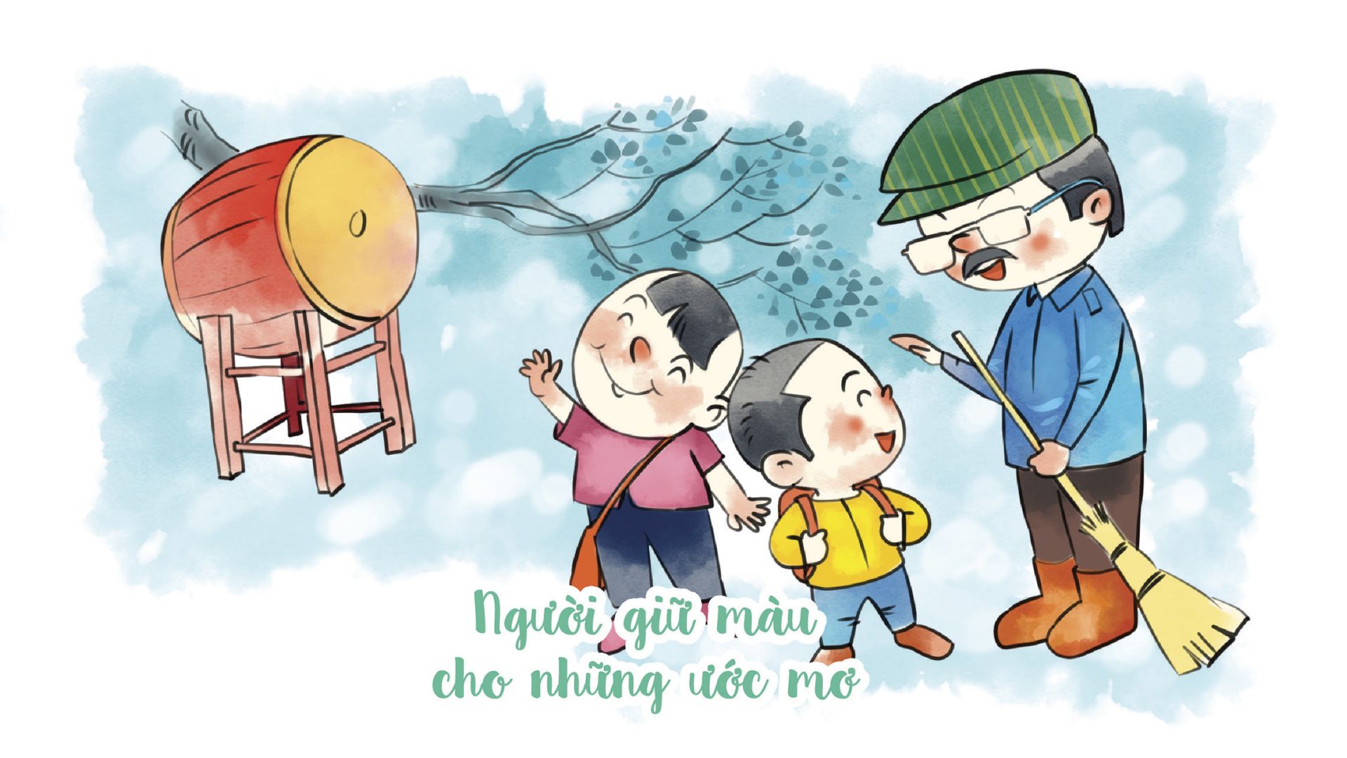 Vào ngày bế giảng năm học, trong khi các bạn mải mê ký tên lên áo nhau, tôi đã chạy đến góc bảng tin, dán lên đó một bức tranh nhỏ mình tự vẽ: Hình ảnh một chiếc chổi tre dựa vào gốc cây bàng cạnh bảng tin và một trái tim đỏ thắm. Tôi muốn nói rằng: “Cảm ơn bác đã nuôi dưỡng tâm hồn con bằng những điều giản dị nhất”.