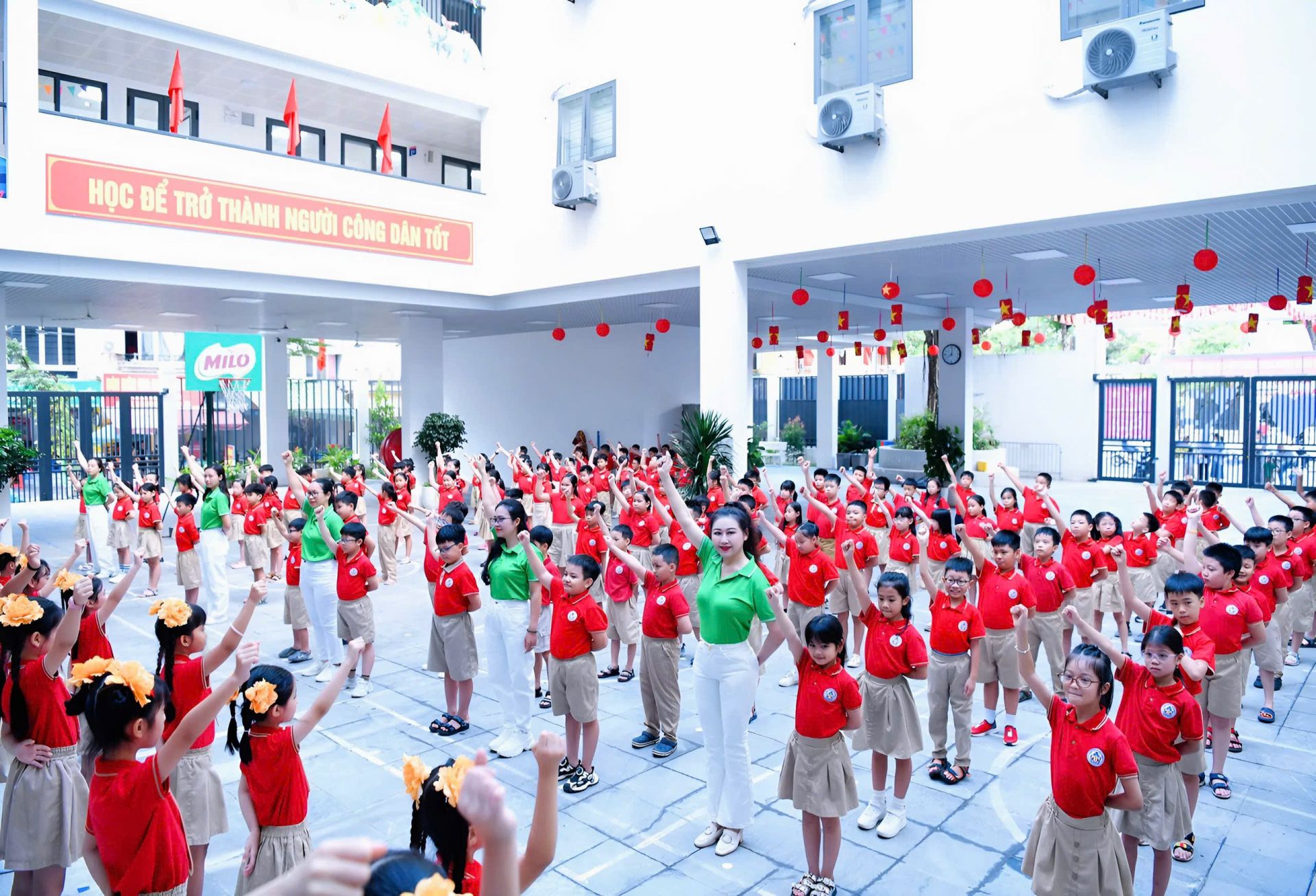 Cùng với các em, các cô giáo khối 3 cũng trực tiếp tham gia biểu diễn, tạo nên hình ảnh đẹp về tinh thần gắn bó, đồng hành giữa cô và trò. Mỗi bước nhảy, mỗi động tác trên nền nhạc “Việt Nam ơi” như gửi gắm thông điệp “Yêu Tổ quốc, yêu đồng bào”, thể hiện niềm tự hào và lòng biết ơn sâu sắc với quê hương đất nước.