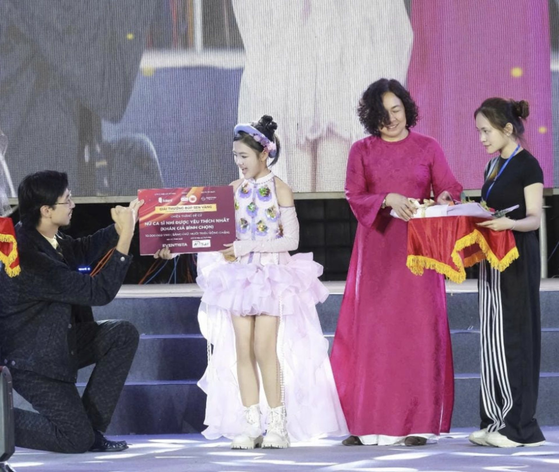 Khoảnh khắc xúc động và đáng nhớ nhất của Minh Châu chính là khi em được Rapper Đen trực tiếp trao danh hiệu “Nữ ca sĩ nhí được yêu thích nhất”. Với phong thái giản dị và tình cảm đặc biệt dành cho thế hệ trẻ, Rapper Đen đã nhẹ nhàng cúi thấp người để trao giải cho em, một cử chỉ tuy khiêm nhường nhưng tràn đầy sự trân trọng, yêu thương và niềm tin vào những mầm non nghệ thuật trong tương lai.