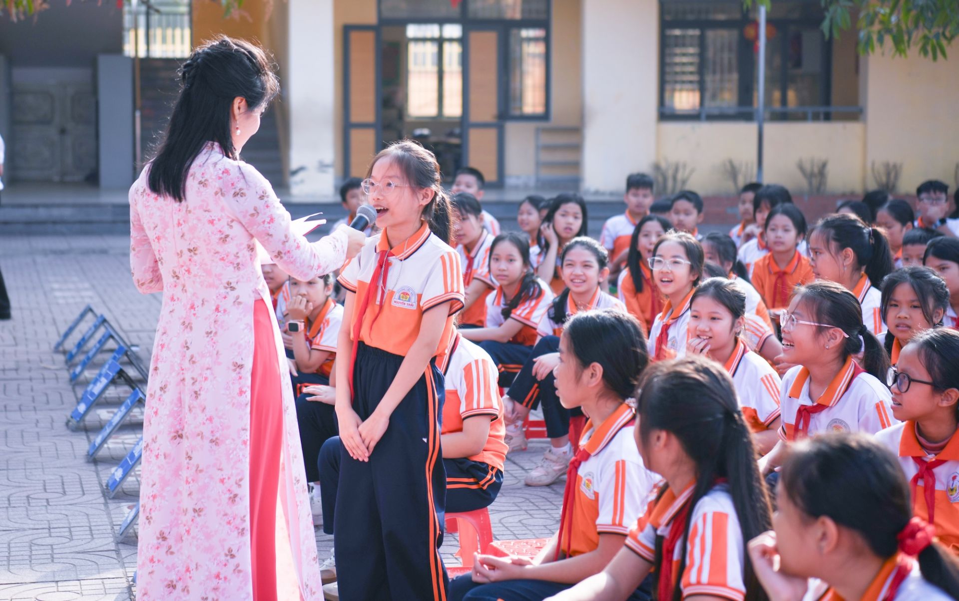 Đại diện cho học sinh toàn trường, bạn Nguyễn Hoàng Hà My (lớp 5K), đã bày tỏ cảm xúc và quyết tâm tham gia Cuộc thi bằng những việc làm cụ thể, thiết thực, thể hiện tình cảm kính yêu Bác Hồ kính yêu: "Cuộc thi “Bác Hồ với thiếu nhi - Thiếu nhi với Bác Hồ” là một hoạt động rất ý nghĩa. Thông qua cuộc thi, chúng mình có cơ hội tìm hiểu thêm về cuộc đời, sự nghiệp và tình cảm yêu thương bao la mà Bác Hồ đã dành cho thiếu nhi Việt Nam. Đây cũng là dịp để chúng mình thể hiện tình cảm kính yêu đối với Bác bằng những việc làm, sản phẩm cụ thể như bài viết, câu chuyện, tranh vẽ hay những ý tưởng sáng tạo của riêng mình".