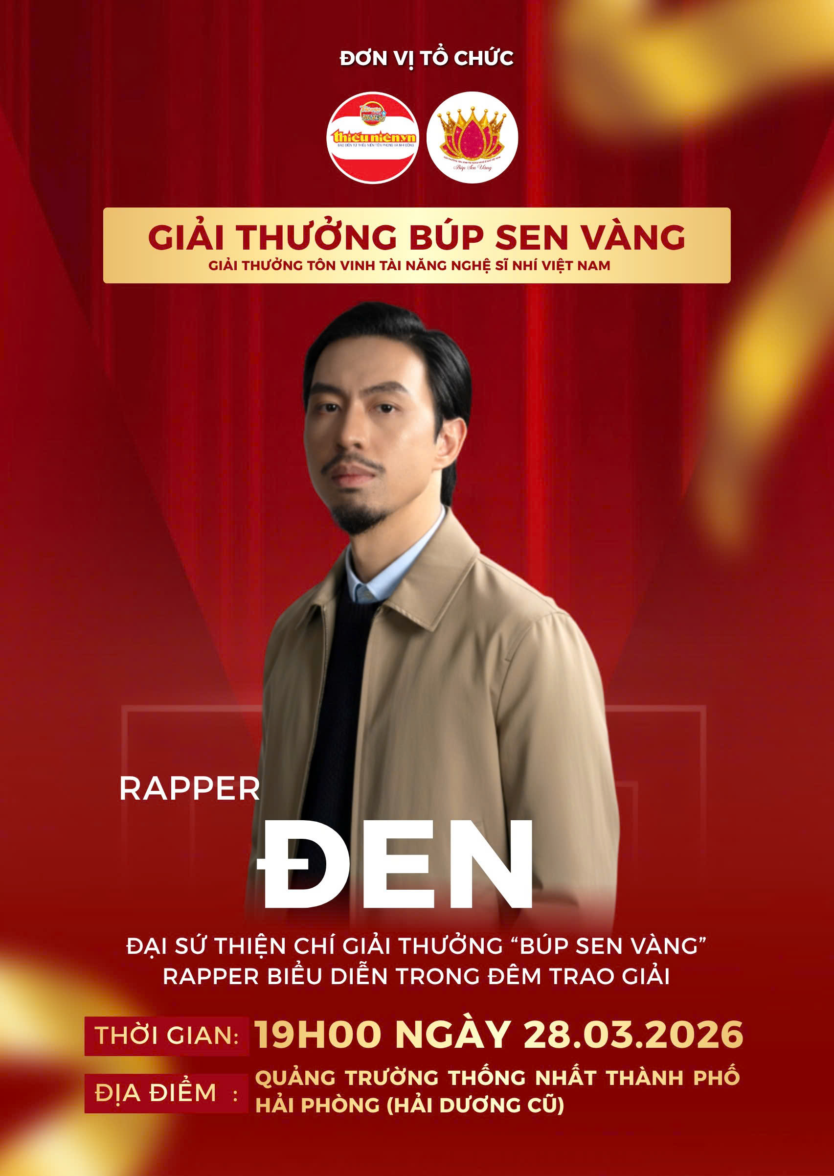 Tại Giải thưởng Búp Sen Vàng 2025 — sân chơi tôn vinh tài năng nghệ thuật thiếu nhi Việt Nam, rapper Đen Vâu đóng vai trò Đại sứ thiện chí đã mang ý nghĩa đặc biệt. Anh không chỉ là gương mặt đại diện lan tỏa thông điệp nhân văn của chương trình, mà còn là người truyền cảm hứng cho thế hệ trẻ về lối sống tử tế, biết yêu thương và sẻ chia.