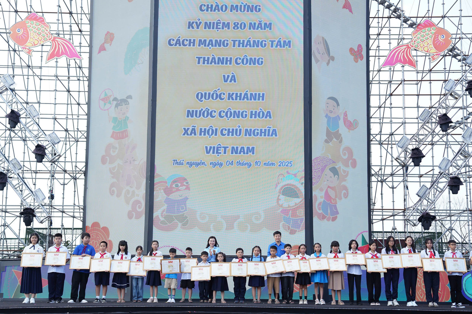 Tại chương trình, Hội đồng Đội Trung ương đã trao Bằng khen cho các tập thể và cá nhân có thành tích xuất sắc trong các cuộc thi chào mừng kỷ niệm 80 năm Cách mạng Tháng Tám thành công và Quốc khánh 2/9.