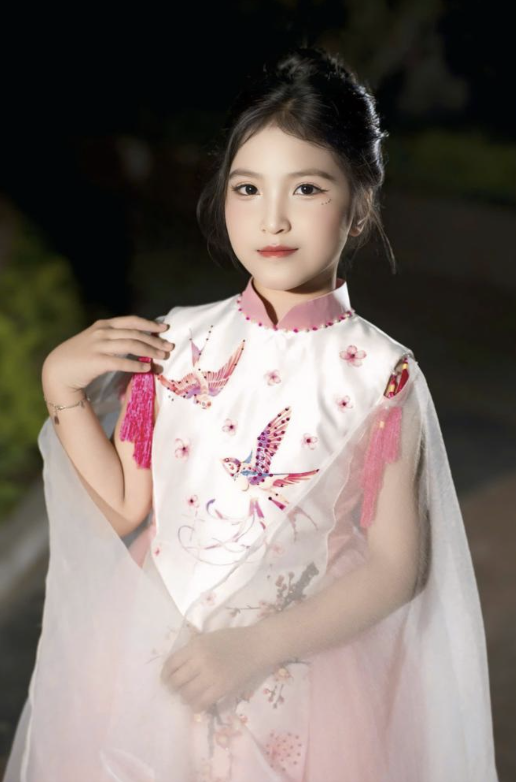 Hành trình nghệ thuật của em được tô điểm rực rỡ bằng những dấu ấn đáng tự hào: Từ giải Nhì của cuộc thi Tài năng nhí Việt - Summer Malliday Vincom, danh hiệu “Ngôi Sao Tỏa Sáng” tại chung kết toàn quốc cuộc thi “Thắp sáng những ngôi sao buổi sớm 2025” đến vai trò người mẫu áo dài trong chương trình “Áo dài và tuổi thơ” của NTK Bảo Đặng, mỗi bước đi của em đều khắc họa niềm đam mê và nỗ lực không ngừng.