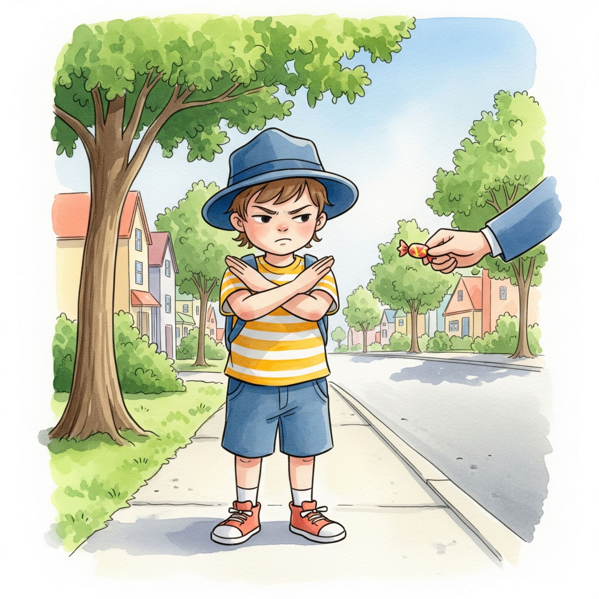 Dù họ có cho bạn bánh kẹo, đồ chơi hay thứ gì hấp dẫn, cũng hãy nói "Không ạ, cháu không nhận đâu!" và tuyệt đối không đi theo người lạ. Đừng để sự tò mò làm bạn gặp nguy hiểm!